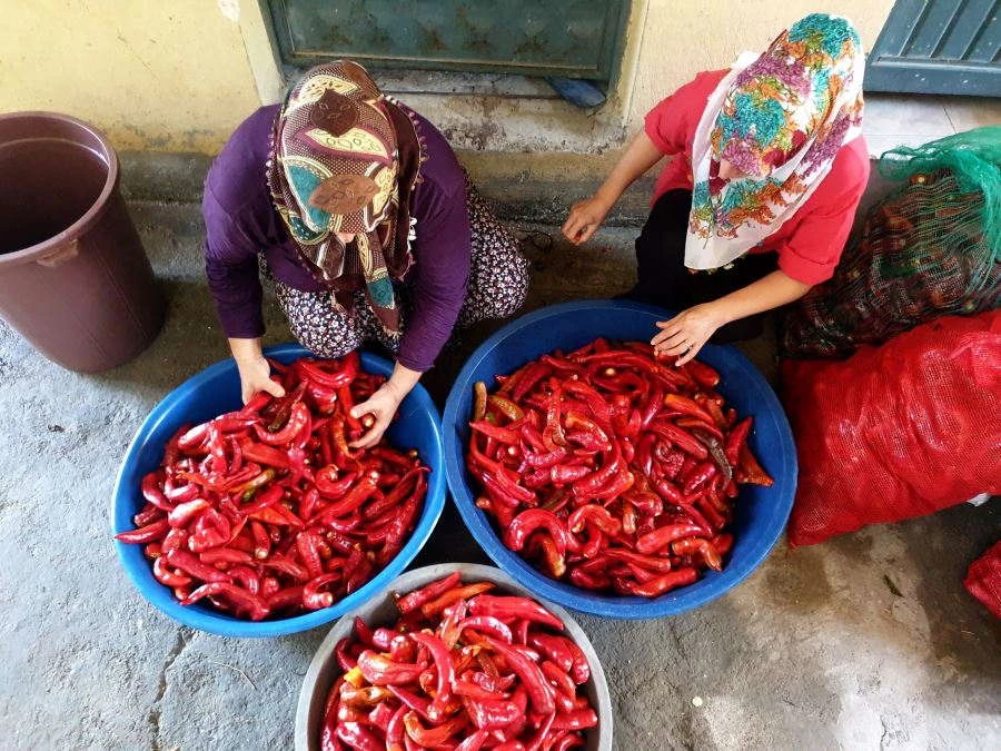 Osmaniye'de her yıl ağustos ve eylül aylarında hasat edilmeye başlanan kırmızı biberler, geleneksel yöntemlerle kadınların elinde salçaya dönüştürülüyor.