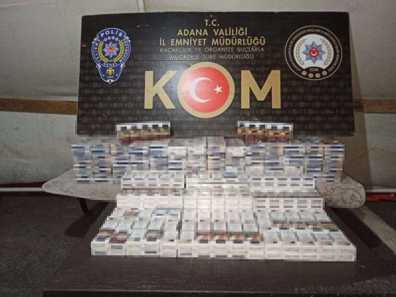 Adana’da polisin yaptığı operasyonda 2 bin 446 kaçak puro, bin 70 paket kaçak sigara, bin 470 paket elektronik sigara kartuşu, 26 kilo, kaçak nargile tütünü ve 18 kaçak cep telefonu ele geçirildi.