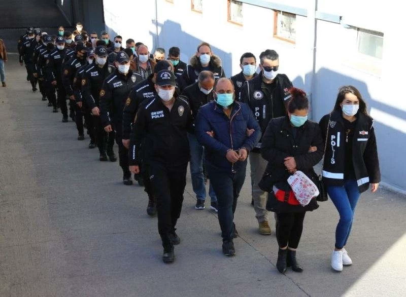 Operasyon kapsamında Gaziantep’te gözaltına alınan emekli icra müdürü Emine İ.’nin de aralarında olduğu 18 zanlıdan 14’ü sorguları tamamlandıktan sonra adliyeye sevk edildi. Sevk sırasında çete ile birlikte hareket edip haksız kazanç elde ettiği öne sürülen Emine İ. tanınmamak için maske ile gözlerini de kapatması dikkat çekti.