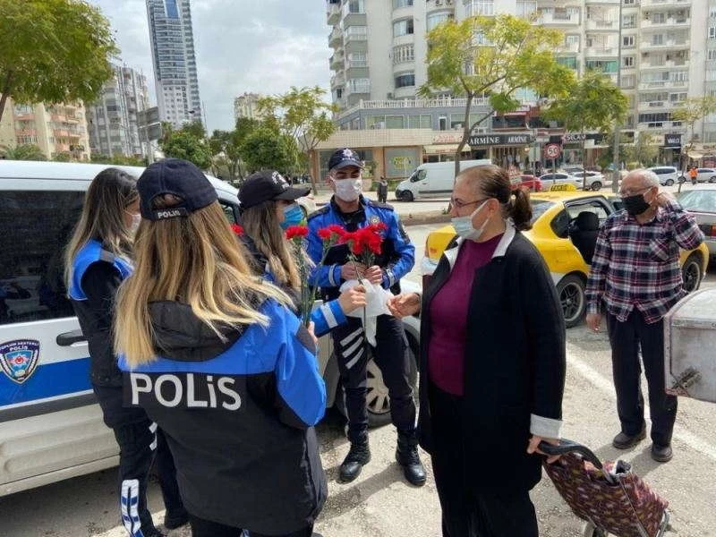 Adana’da polisler, 18-24 Mart Yaşlılar Haftası dolayısıyla vatandaşlara karanfil dağıttı.