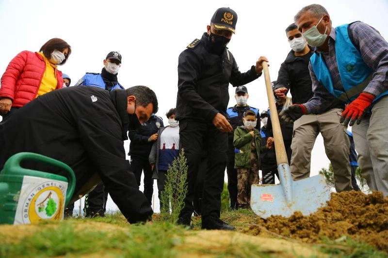 Adana’da 1935 yılından bu yana şehit olan 135 polis memuru şehidinin çocuk ve eşleri 135 fidan dikti.