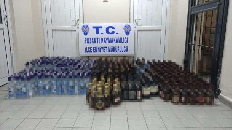 Adana’nın Pozantı ilçesinde 615 şişe sahte içki ele geçirildi.