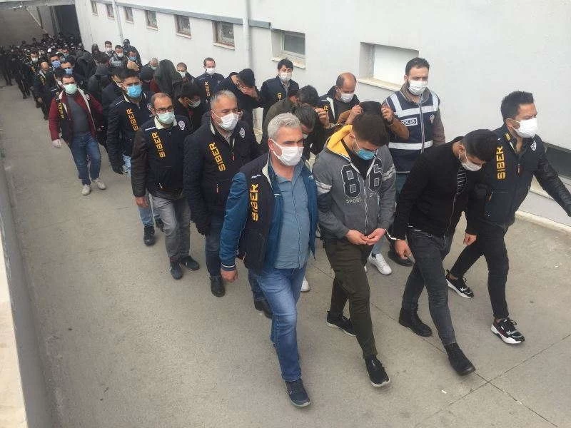 Adana merkezli 10 ilde 750 polisle yapılan operasyonda, bin 630 ayrı internet sitesi üzerinden yasa dışı bahis oynatıp 7 milyon 300 bin liralık dolandırıcılık yaptıkları iddiasıyla gözaltına alınan 11’i kadın toplam 99 zanlı adliyeye sevk edildi. Aralarında uzman çavuş, uzman erin de olduğu şebekenin, sahte internet sitesi yaptırmak için “webmaster” kiraladığı ortaya çıktı.