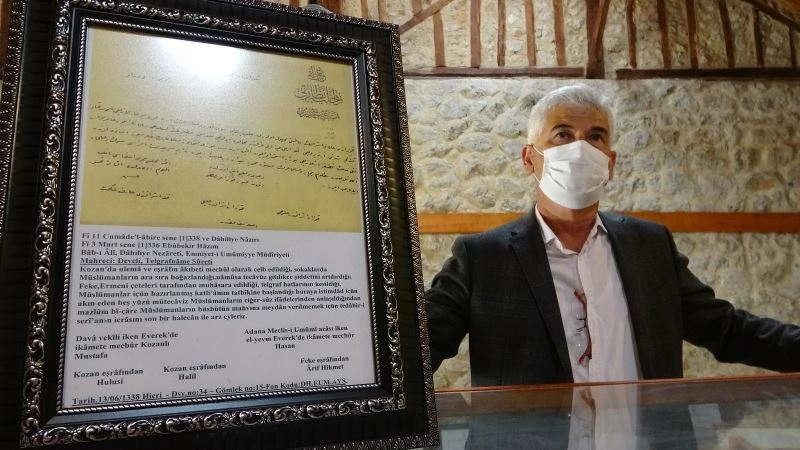 Kemal Selekoğlu, "24 Nisan bizim açımızdan Ermenilerin Türklere yaptıkları katliamın günü aslında. Onlar tam tersini her 24 Nisan’da söylese de Türk halkına, Müslümanlara yapmadıkları kalmamış bunları dedemden kalan belgeler ile görüyoruz. Büyük babam Sehlikzade Hasan Efendi’den kalan ve resmi kurumlarda da kayıtlı olan belgeler her şeyi anlatıyor. Hasan Efendi Adana girişinde buradaki mücadeleyi açıklıyor. Mektupta ’Müslümanlar için hazırlanmış katliamın uygulanmaya başladığı ve Allah’a sığınarak göç etmek için yola çıkanların acı ifadelerinden anlaşıldığından bir an önce tedbir alınması talebi ve kadın ve gençlere namus ve boğazlarının kesildiğini’ aktarıyor. Bu zor şartlarda yola çıktık ve ilçe ilçe köy köy dolarak vatandaşı direnişe çağırdıklarını anlatıyor. Kuvayi Millîye burada başlamış. Burası Kozan’a bağlı Çukurköprü’den Bucak istikametine gelirken herkesin gezip görebileceği bir merkez. Herkes gelip görsün. 100 yıl önce yaşananları unutmayalım. Şu anda bu mücadele yeniden yaşanıyor ve yıllarının resimleri var. Bizim tek beklentimiz vatandaşlarımız bu belgeleri bu tarihi görsün ve şu an Libya’da, Suriye’de, Doğu Akdeniz’de verilen mücadeleyi doğru anlayalım ve geleceğimize ışık olsun” dedi.