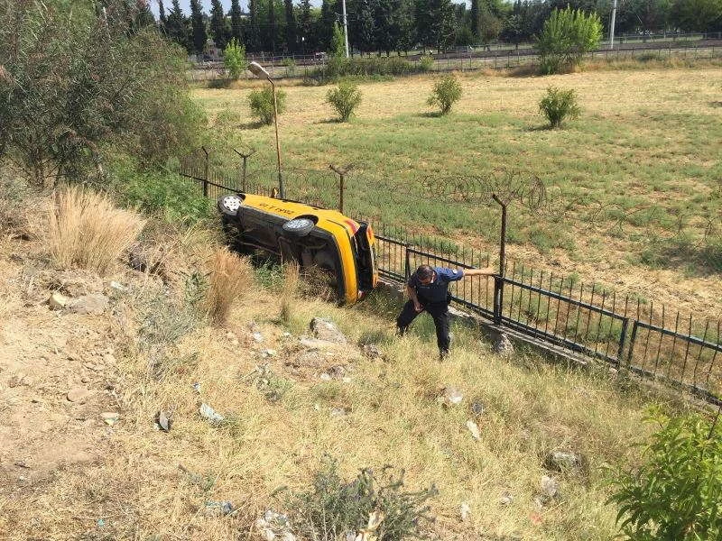 Adana’da virajı alamayarak şarampole devrilen taksinin sürücüsü yaralandı.