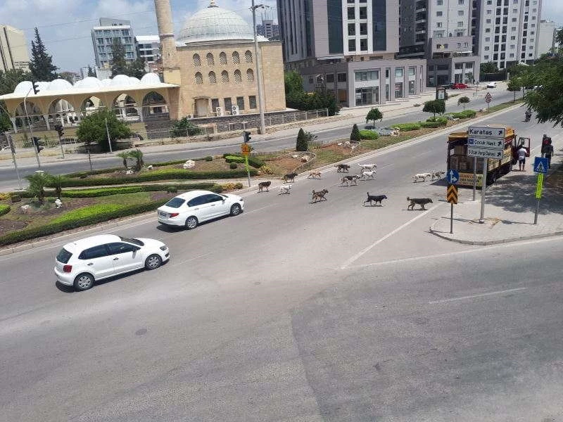 Sokak köpekleri Adana sokaklarında sürü halinde geziyor