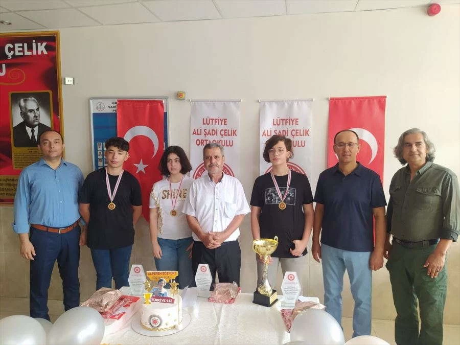 İlçe Milli Eğitim Müdürü Gazi Keleş, Bozkurt'un eğitim gördüğü Lütfiye Ali Şadi Çelik Ortaokulu'nda düzenlenen törende, öğrenci ve ailesi ile öğretmenleri tebrik etti.