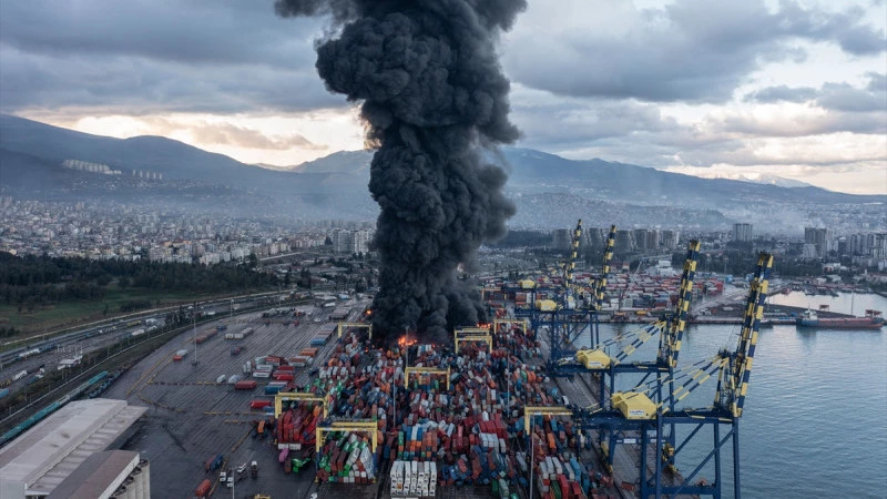 Kahramanmaraş merkezli ve 10 ili etkileyen depremler sırasında dün henüz belirlenemeyen nedenle konteynerlerde çıkan yangın gece boyunca devam etti.