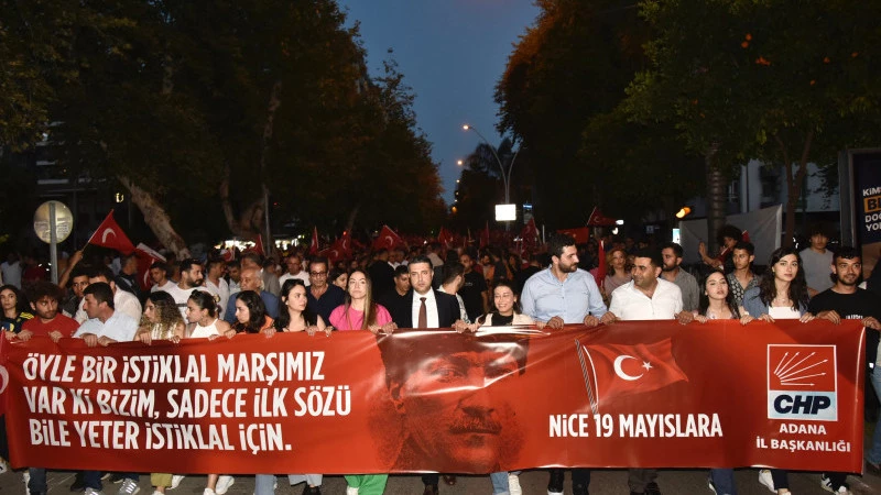 Korteje katılan gençler, “Öyle bir İstiklal Marşı’mız var ki bizim, sadece ilk sözü yeter istiklal için” yazılı pankart taşıdı. Türk Bayraklarıyla yürüyen Adanalılar, Uğur Mumcu Meydanı’nda ünlü sanatçı Edip Akbayram konseriyle coştu.