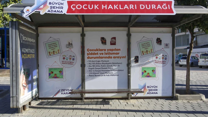 Adana Büyükşehir Belediyesi, Dünya Çocuk Hakları Günü’nde, toplu taşma durağını mesajlarla donatarak, çocuk hakları konusunda toplumda farkındalık oluşturulmasına katkı sağlamak için harekete geçti.